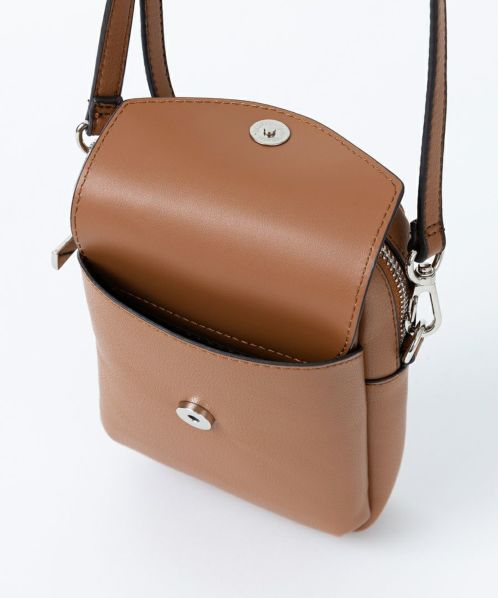 「 オンオフで使える軽いカバン 」をコンセプトに開発した合成皮革を使用したシンプルなデザイン。コンパクトなサイズ感ですが、スマホ・三つ折り財布・エコバッグなど、最低限の荷物が入るので、これ一つでおでかけができます。