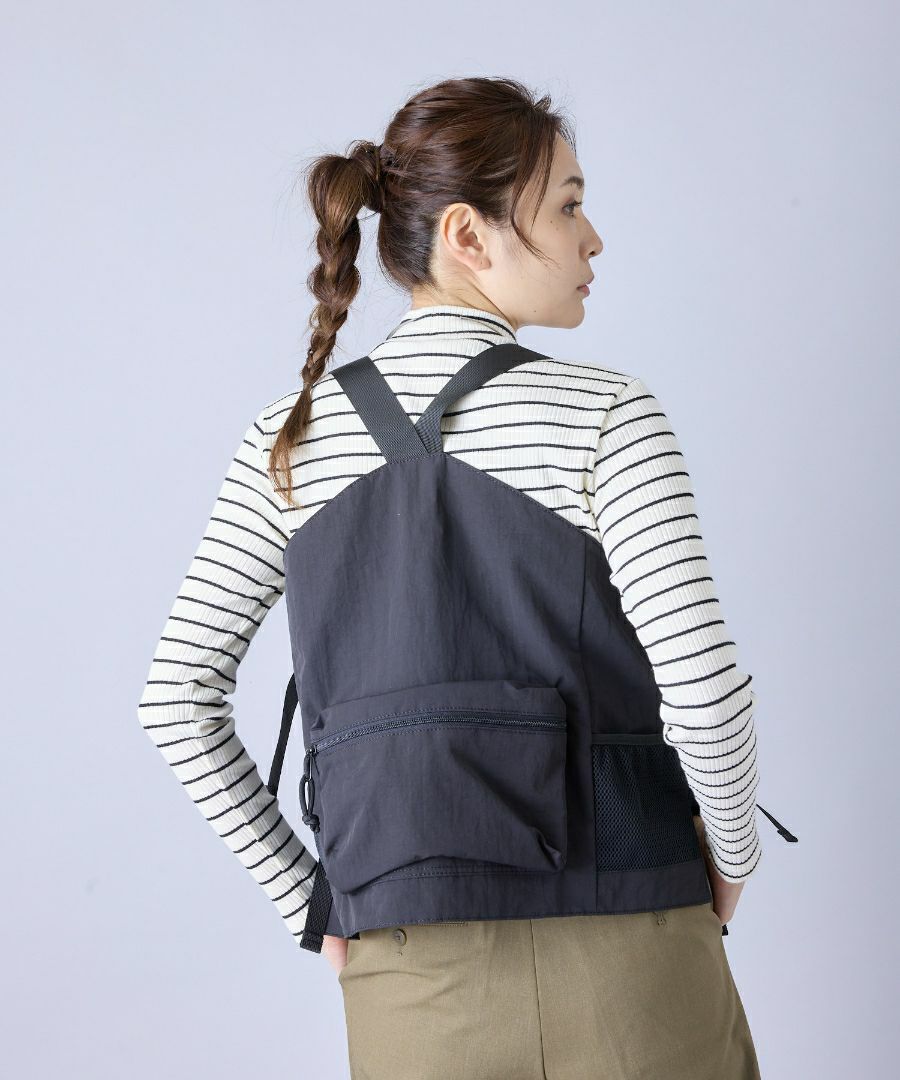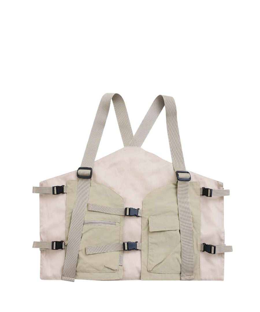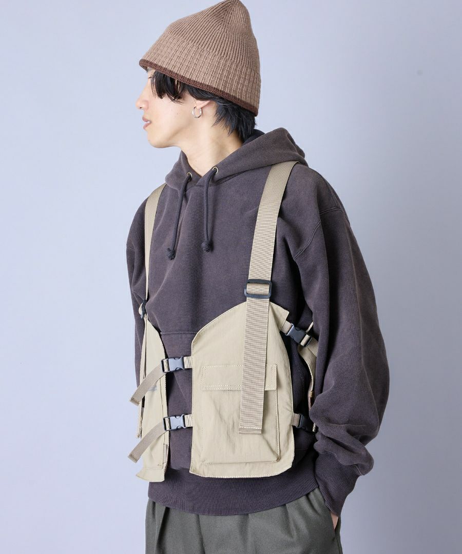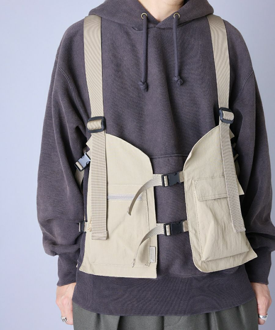 オフィシャル限定で好評だった「着るリュックベスト」の第3弾が新登場!便利なポケットはそのままに、生地をトレンドのヴィンテージ感ある軽量ナイロンに変更。フロントとサイドにあるベルトでサイズ調節が可能なのも嬉しいポイント。Tシャツやシャツに羽織るだけでサマになり、レイヤードスタイルにおすすめ。普段使いはもちろん、アウトドアシーンでも活躍する、万能なアイテムです。