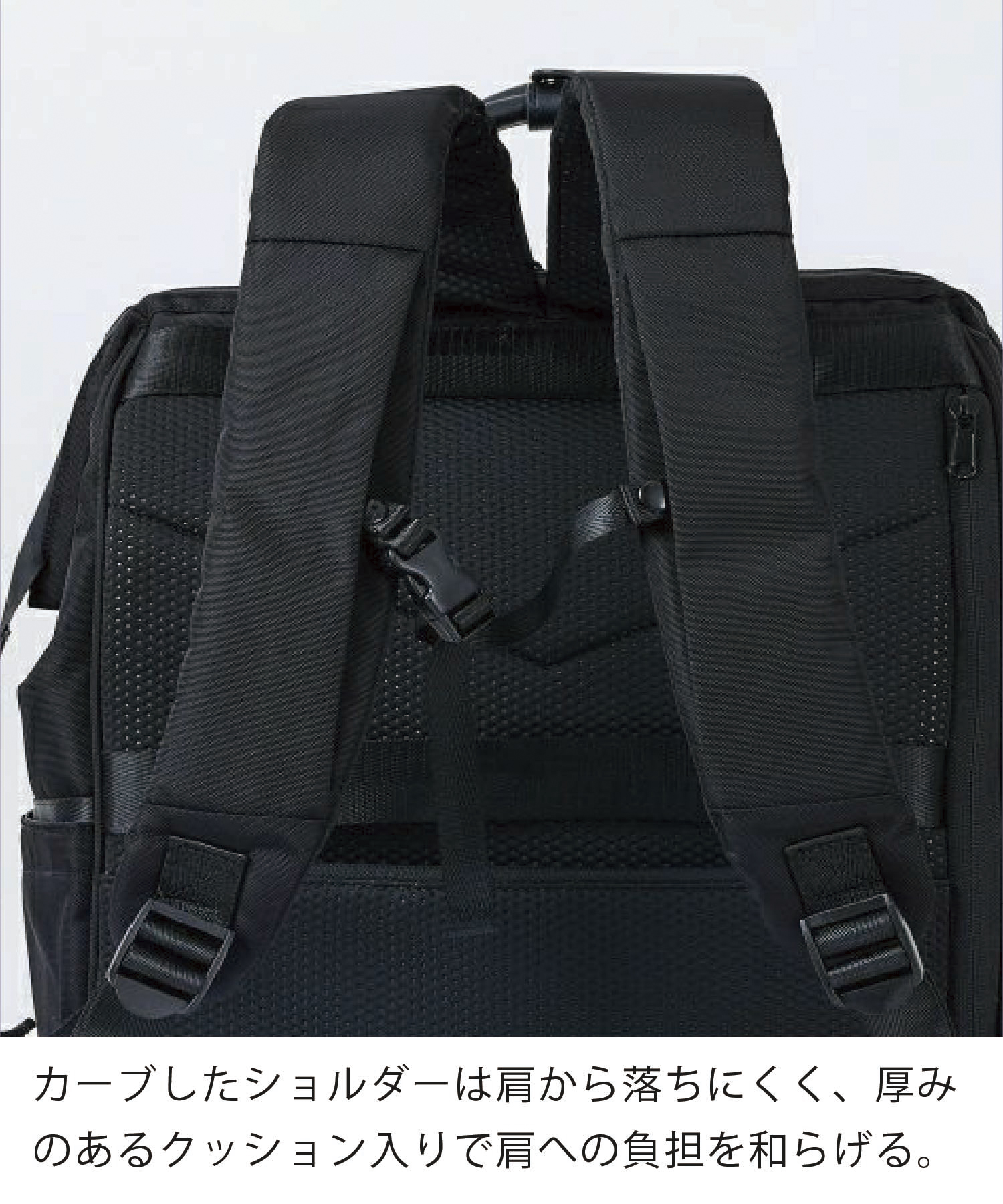 “ こうだったらいいな。“お客様の声をぎゅっと凝縮した機能性たっぷりな『Cliente(クリエンテ)』シリーズ。性別・年齢問わずに幅広い層のお客様にお使いいただけるよう、定番の口金リュックをベーシックなデザインに仕上げました。PC収納可能で通学や通勤にも最適◎背面にはファスナーポケットがあるので貴重品が収納でき、安心です。開口部がガバっと空くのでサッと荷物にアクセス可能。