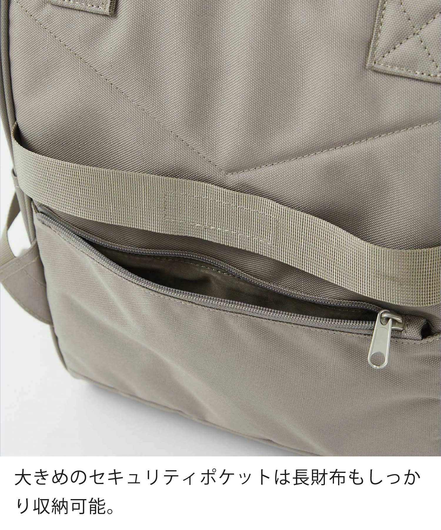 背面には貴重品を収納できるセキュリティーポケットと本体収納へ直結するファスナー付き。機能性と使いやすさの備わった、他にはない特別感の詰まったアイテムです!