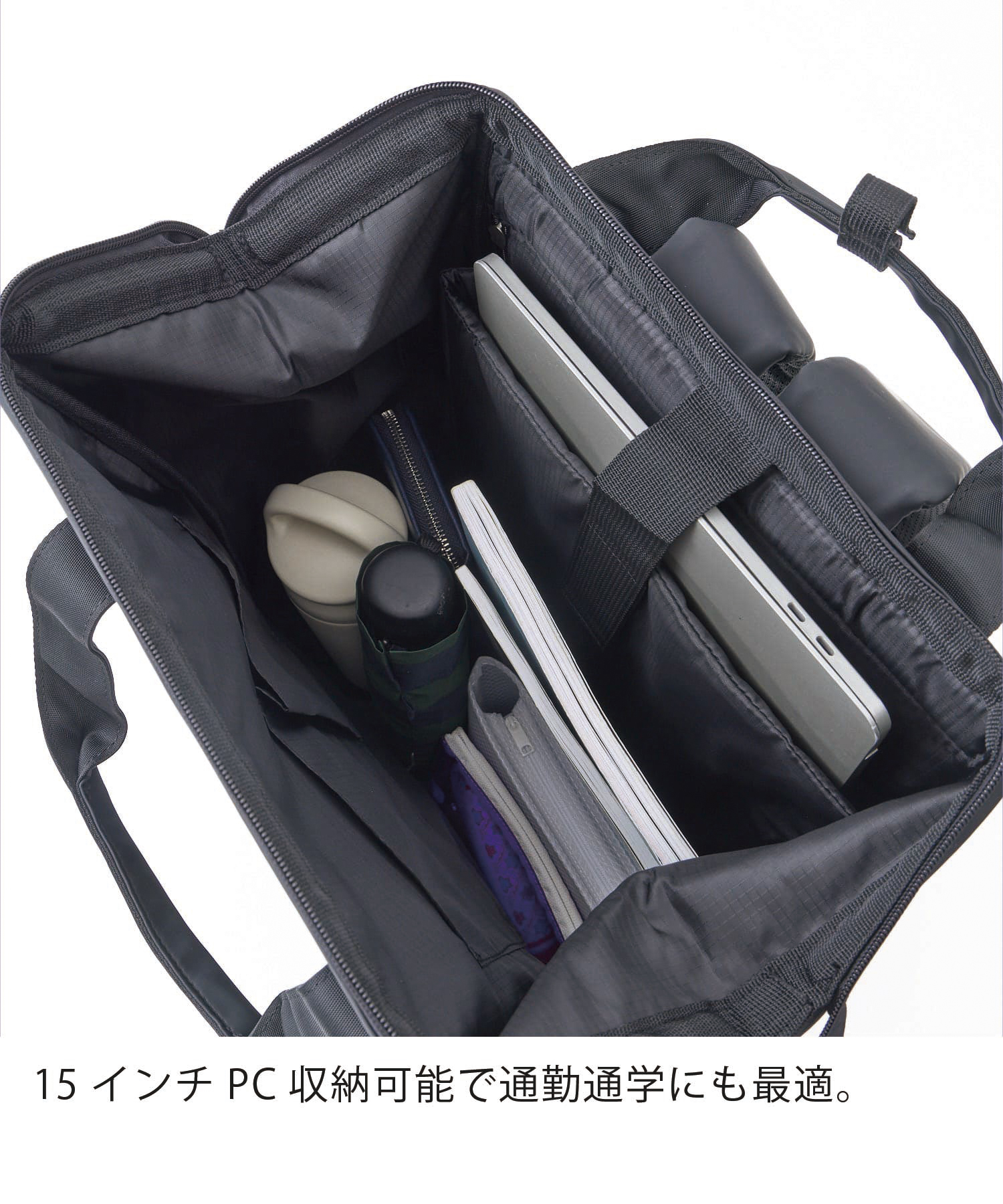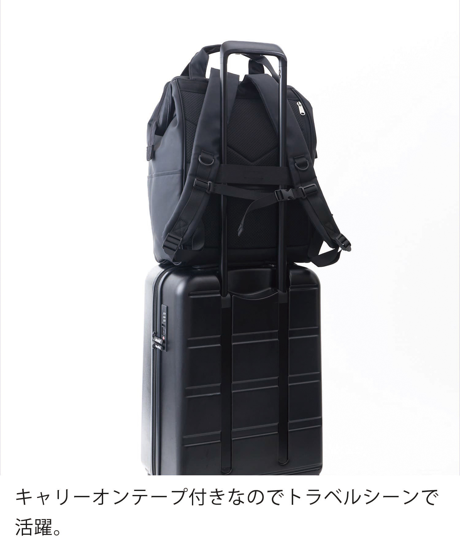 ジェンダーレスなデザインで様々なトラベルシーンで活躍するSEEK(シーク)シリーズ。メインの耐水生地は汚れや水がしみにくくサッと拭き取る事が可能。15インチPC収納可能でキャリーオンテープ付きなので通勤や出張にも最適です◎