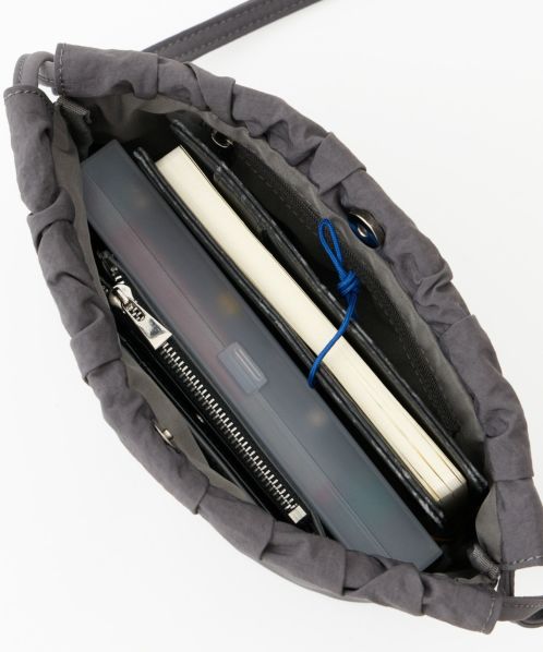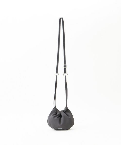 手触りのいいナイロン生地に撥水加工を施したMANOシリーズ。メイン口にはマグホックをつけて巾着をしないでも使えるギャザーデザインがアクセント。ショルダーを外して手持ちができる2WAY仕様なのが嬉しいポイントです。撥水加工なので雨の日のお出かけなどにも最適。