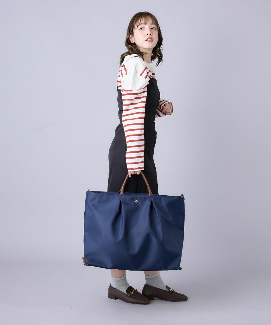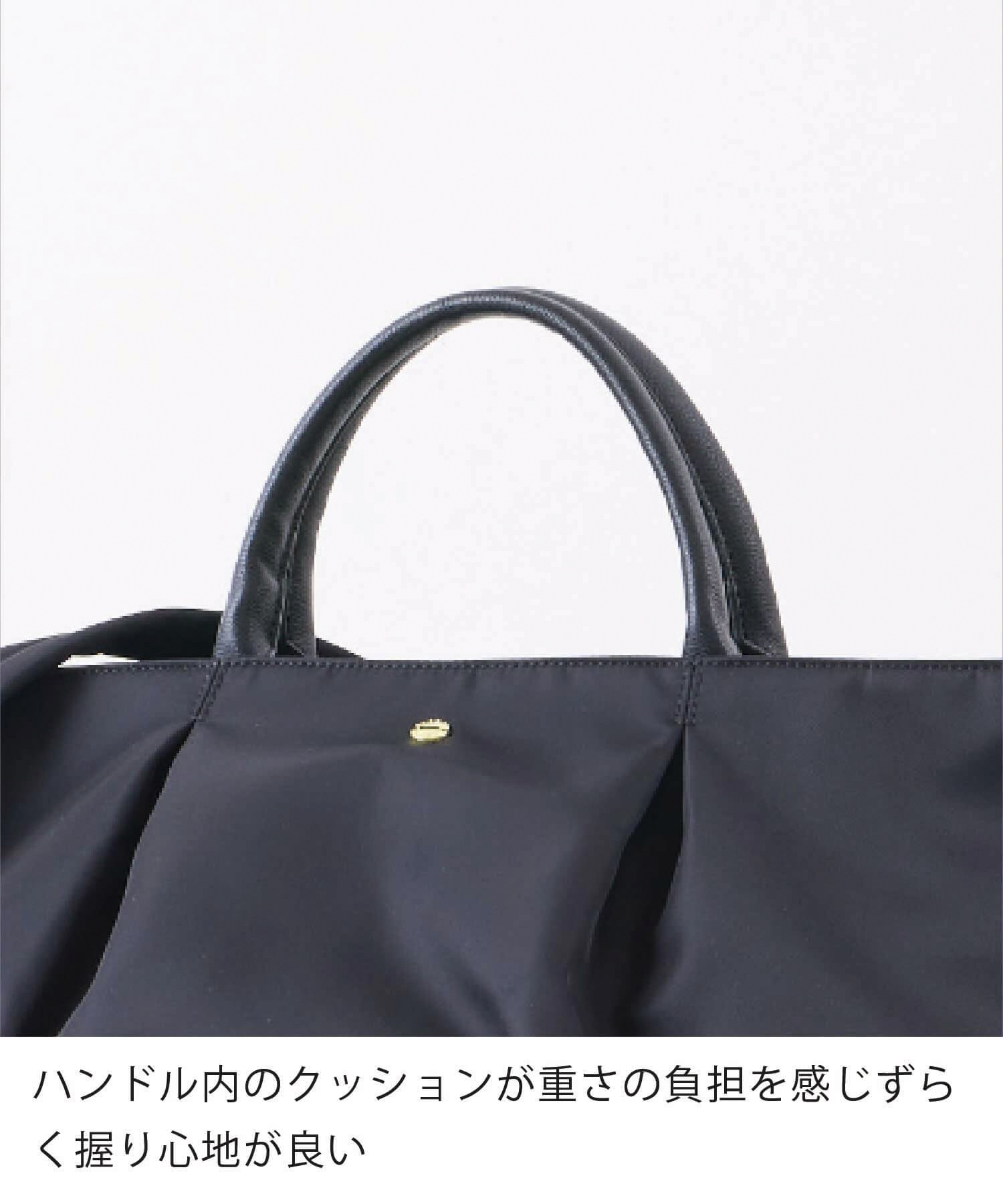 おかげさまで、累計販売数40万個の人気商品へ。長らく愛されてきた肩楽(かたらく)シリーズに新型が登場!上品な光沢のあるナイロンに、手触りの良い柔らかい合皮を使い合わせました。肩への重さを軽減するため、厚めのクッションをショルダーへ入れています。旅行や出張に最適なルーズボストンバッグです。
