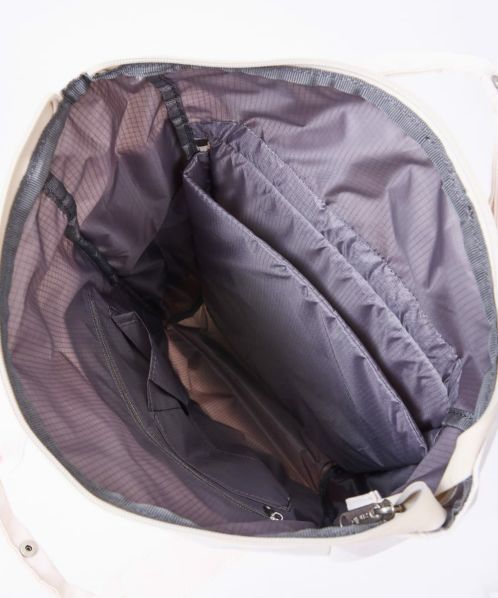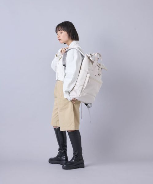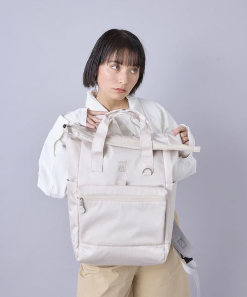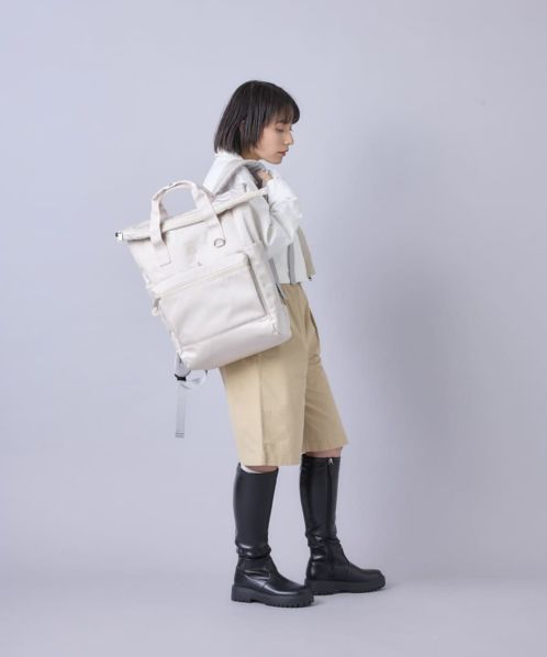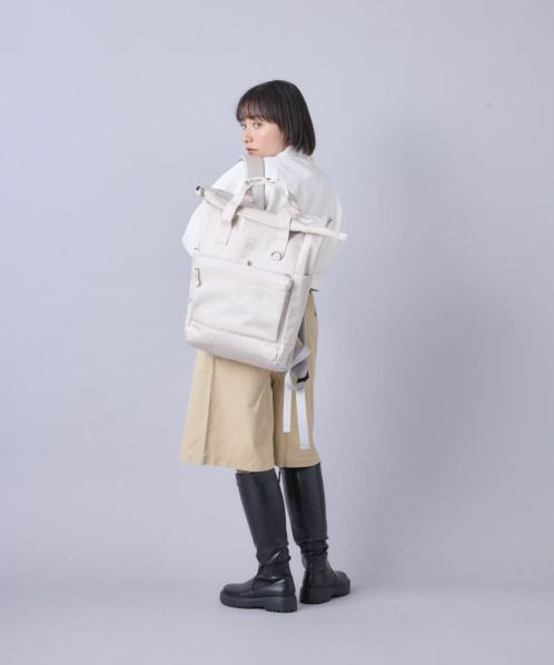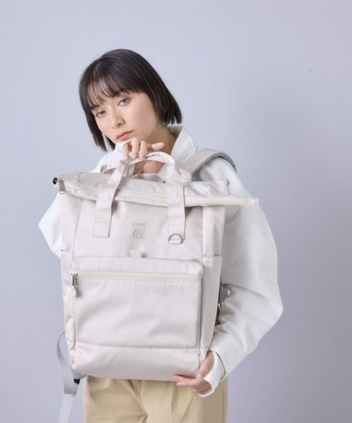 人気の“EXPAND” シリーズの第6 弾!グレイッシュ&ペールトーンカラーのはっ水光沢ポリエステルツイル生地を使った、品のある仕上がりのコレクション。マチがスッキリとした口折れタイプのバックパック。前面には大きめのファスナーポケット+ ベルクロ開閉のポケットがあって便利。キャリーオンテープ、15 インチ対応のPC 収納、着用感のよいショルダーベルト裏と本体背面素材、本体背面セキュリティポケットなど、充実の機能。
