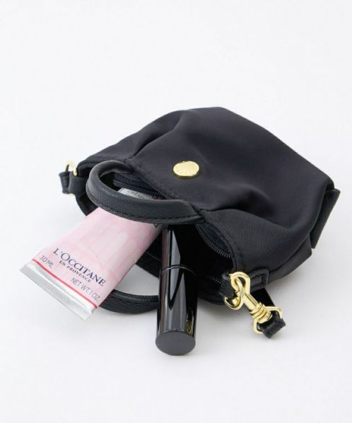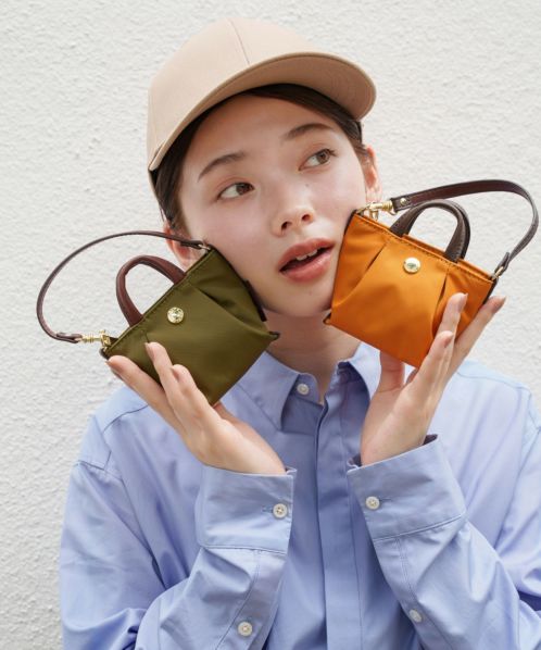 長らく愛されてきた肩楽(かたらく)シリーズに新型が登場!上品な光沢のあるナイロンに、手触りの良い柔らかい合皮を使い合わせました。バッグにつけたり、スマホショルダーに付けたり、楽しみ方は自由です。コンパクトながらリップ等の小物がしっかりと収納可能です。