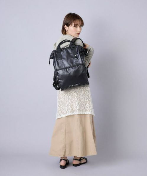 上品な光沢が新鮮かつどんなシーンにもマッチするDANIELLEシリーズ。急な雨の日でも対応可能な耐水生地なのも嬉しいポイント◎レギュラーサイズの口金リュックは13インチのPCが収納可能。落ち着いたデザインとさりげない金具使いがトラッドな印象なので、ビジネスバッグとしてもご使用いただけます◎