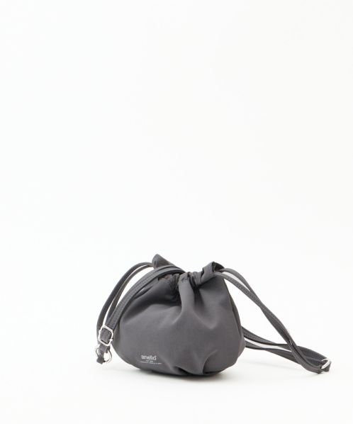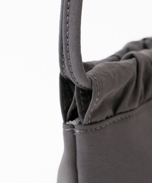 手触りのいいナイロン生地に撥水加工を施したMANOシリーズ。メイン口にはマグホックをつけて巾着をしないでも使えるギャザーデザインがアクセント。ショルダーを外して手持ちができる2WAY仕様なのが嬉しいポイントです。撥水加工なので雨の日のお出かけなどにも最適。
