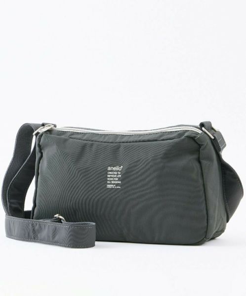 金属カラーのパーツがアクセントの、PARADE(パレード)シリーズ。さらっとした軽量ナイロン生地の、軽く持ちやすいバッグです。嬉しい両面撥水仕様で、ポケットもたくさん。便利な2層ミニショルダーバッグ。トレンドの横長デザインで、気分新たにお出かけできます。