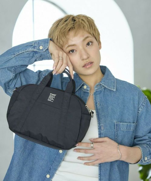 金属カラーのパーツがアクセントの、PARADE(パレード)シリーズ。さらっとした軽量ナイロン生地の、軽く持ちやすいバッグです。嬉しい両面撥水仕様で、ポケットもたくさん。コロンと丸い形の2WAYミニボストンバッグ。程よいサイズ感で、カジュアルなファッションにぴったりです。