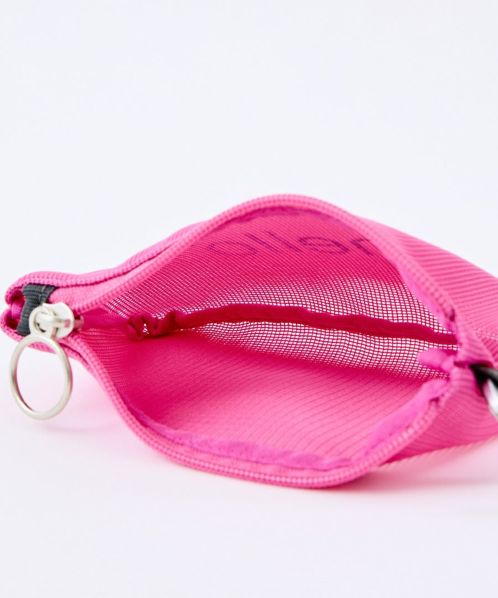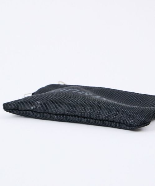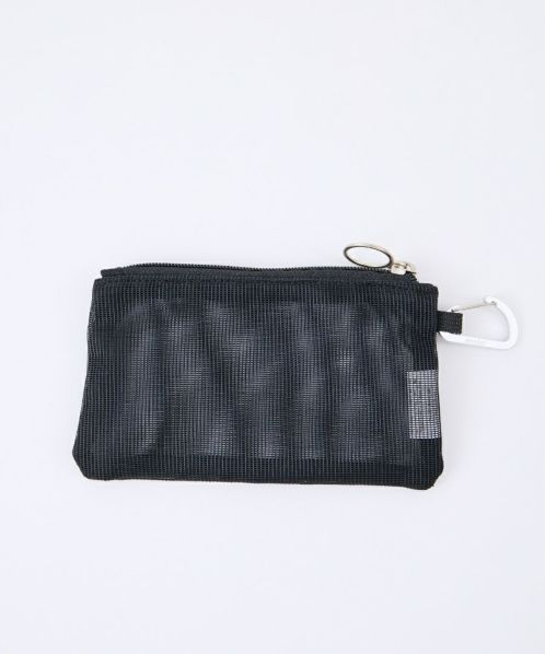 中身が見えるので探し物迷子にならず便利なポーチ。カラビナ付きなのでベルトループやバッグにつけてアクセント。