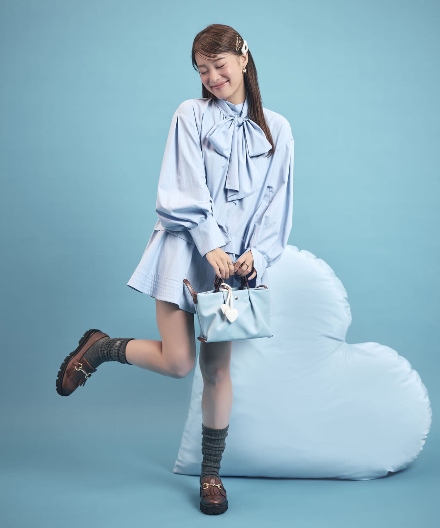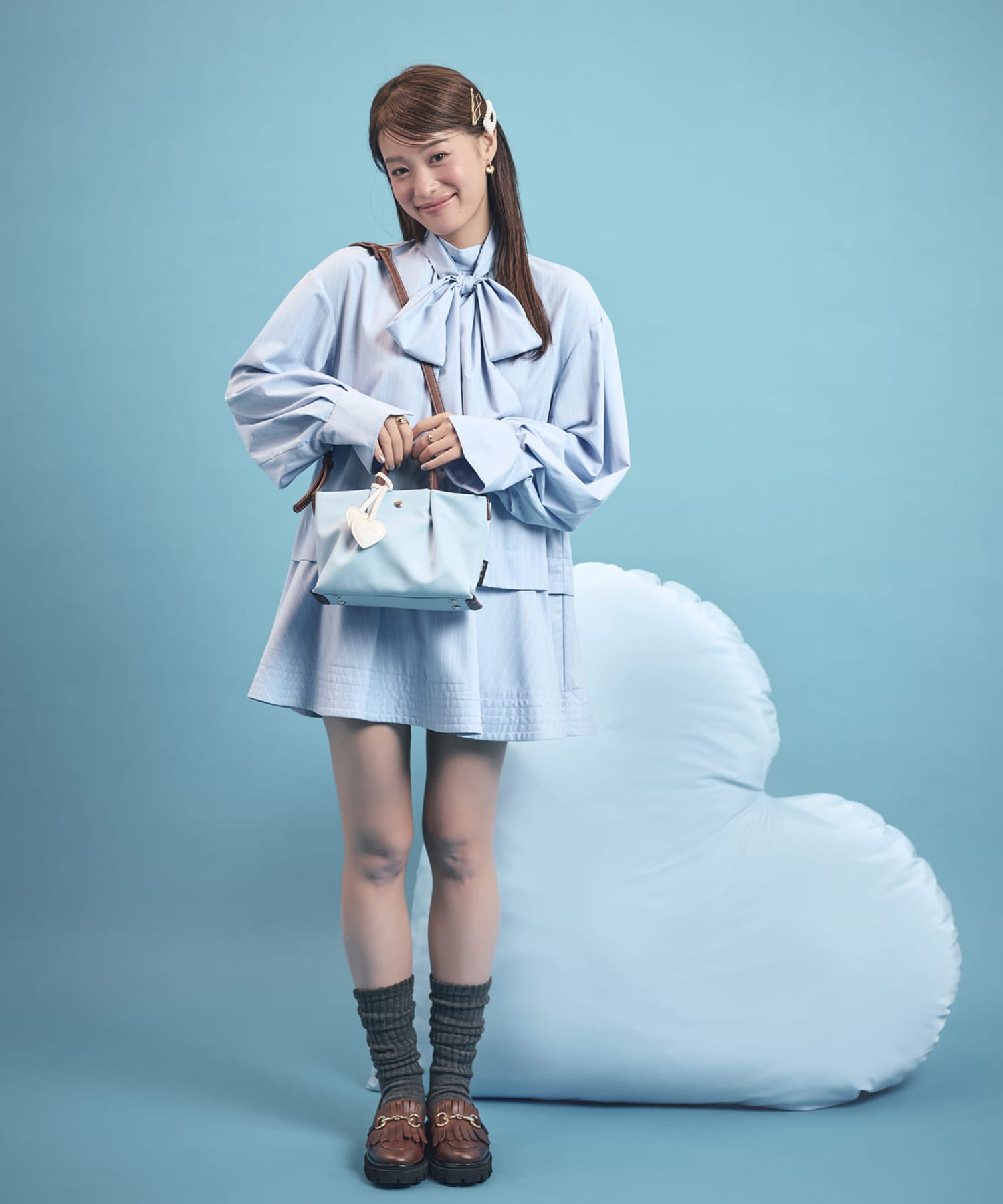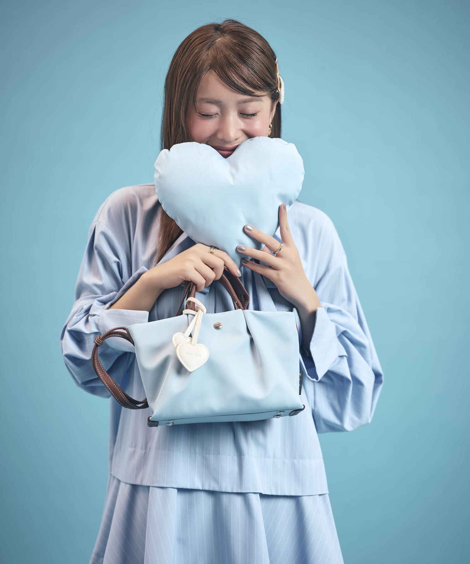 長らく愛されてきた肩楽(かたらく)シリーズ。上品な光沢のあるナイロンに、手触りの良い柔らかい合皮を使い合わせました。ライトブルーのカラーに白いハートのチャームがアクセント。どんなコーディネートにも自然に溶けこみ、さりげない可愛らしさをプラスします◎
