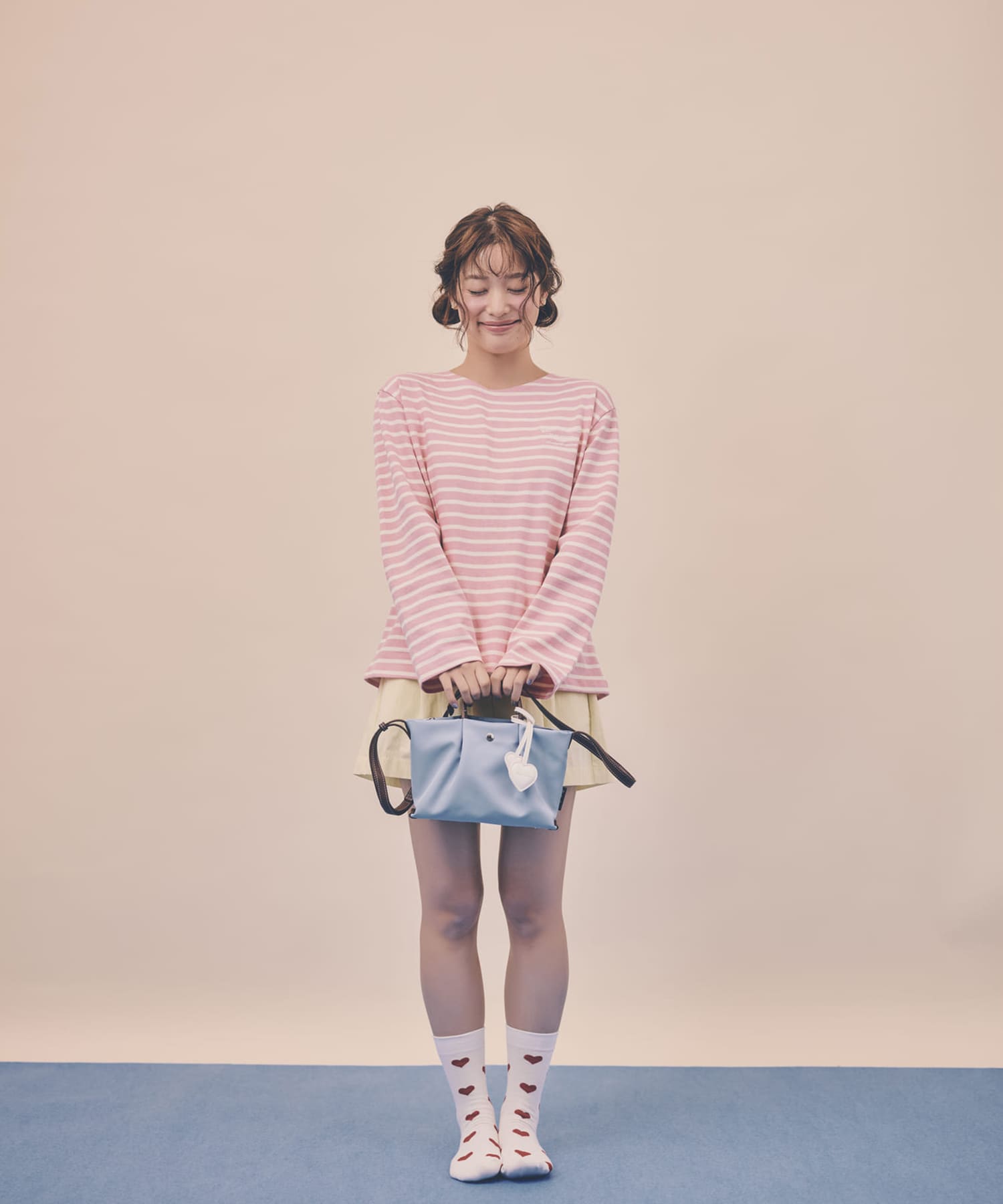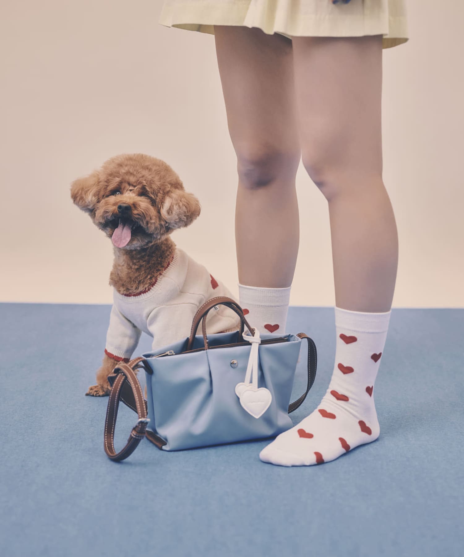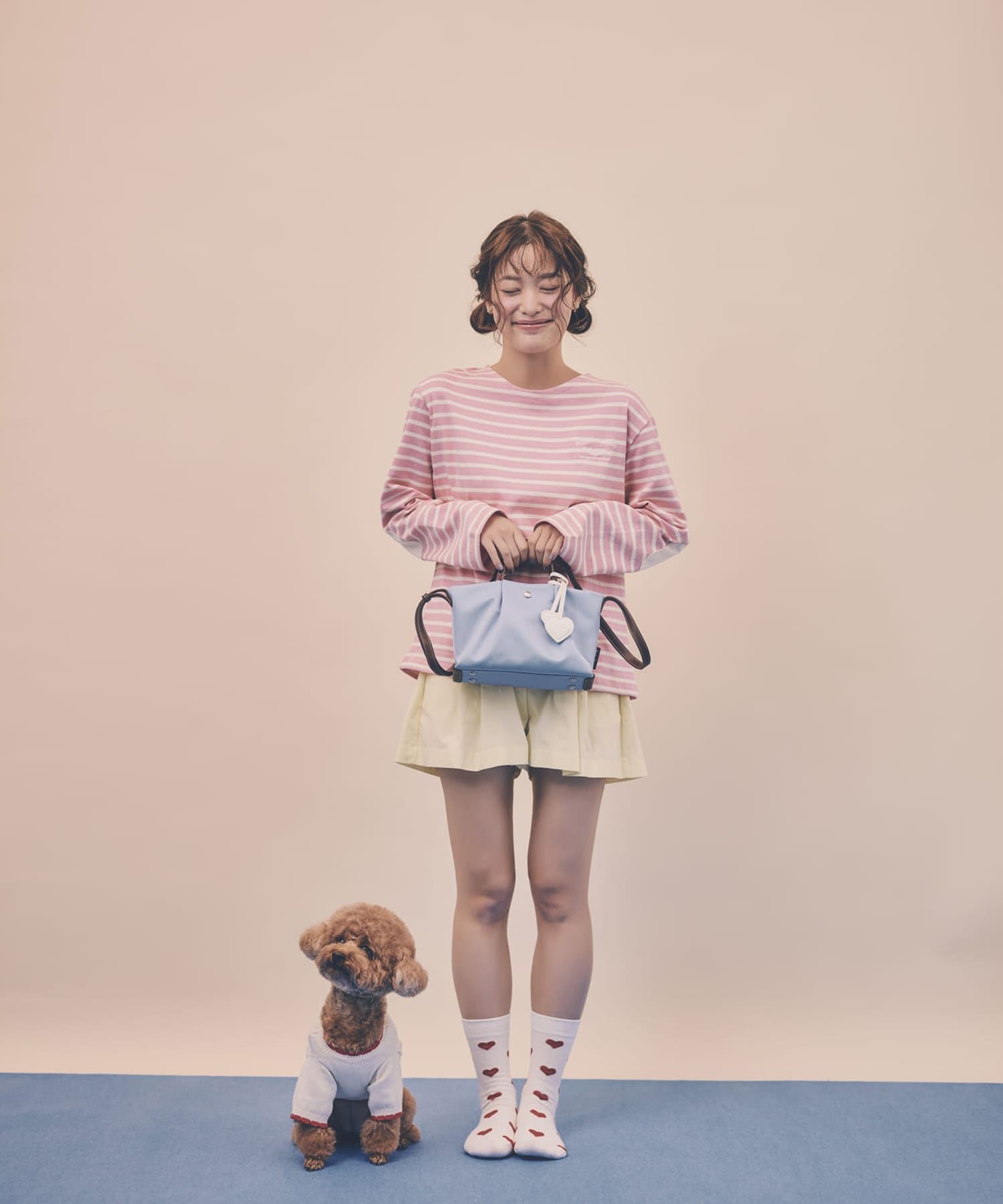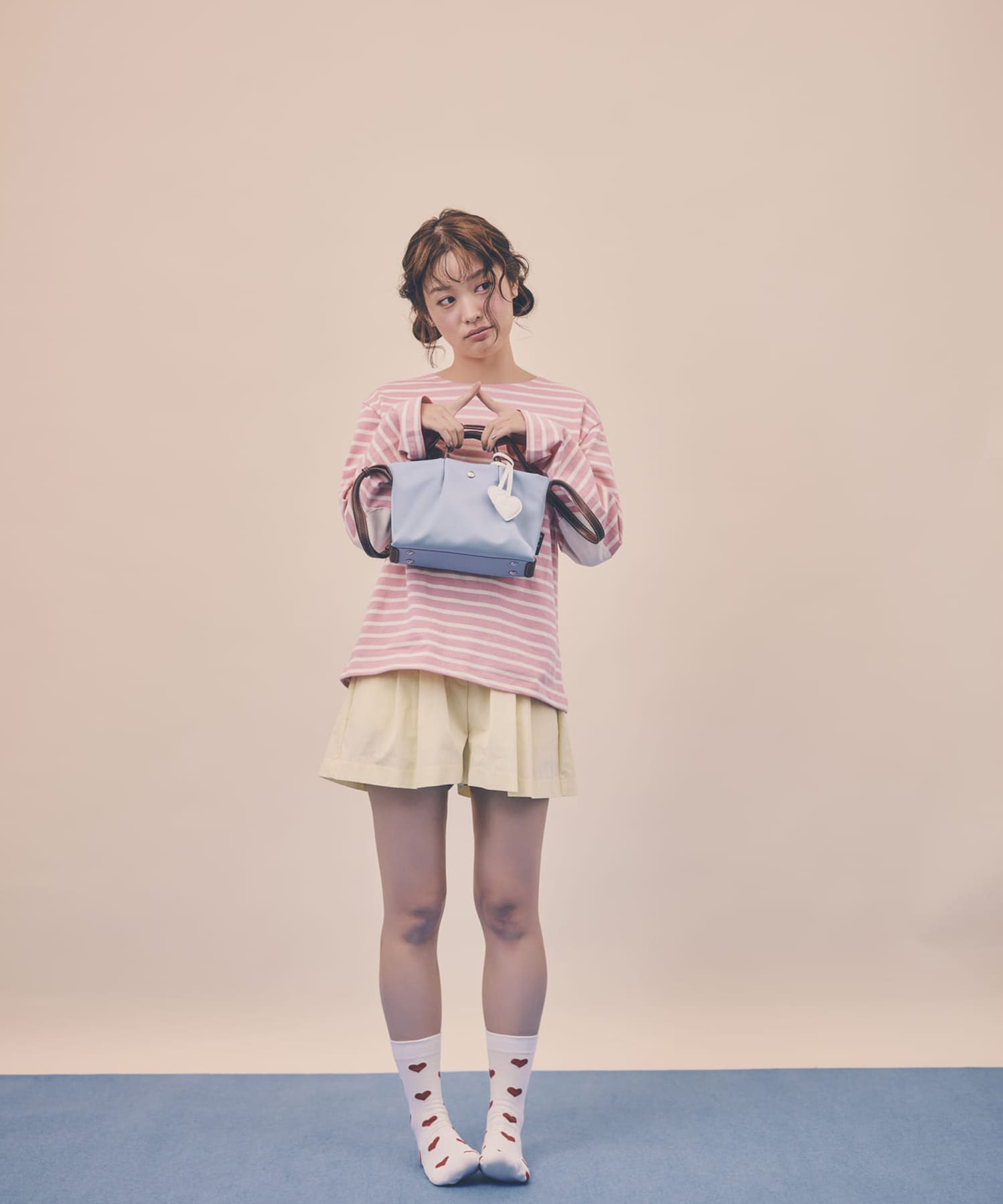 長らく愛されてきた肩楽(かたらく)シリーズ。上品な光沢のあるナイロンに、手触りの良い柔らかい合皮を使い合わせました。ライトブルーのカラーに白いハートのチャームがアクセント。どんなコーディネートにも自然に溶けこみ、さりげない可愛らしさをプラスします◎