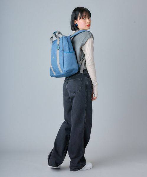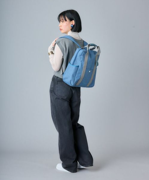 はっ水の杢調ポリエステル生地を使用した、カジュアルかつ上品見えする”BERRY”シリーズ。取り外し可能な合皮のネームタグやシルバーのカシメが大人の日常使いとマッチします。開口部が大きく開き中身が見渡せて整理しやすいデイパック。13インチのPCが収納でき、キャリーオンベルト付きのため、旅行や出張などにぴったり。