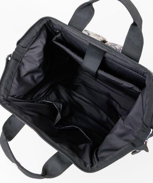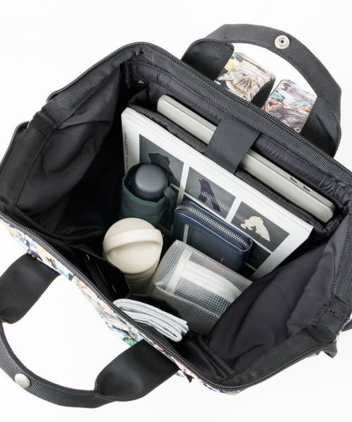 好評だったボタニカルキャットが再販しました。ファスナーを開くとぱっくり口が大きく開きバケツバックのように中が見えやすのが魅力的◎13インチPC収納可能でキャリーオンテープ付きなのが嬉しいポイントです。