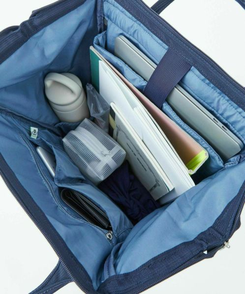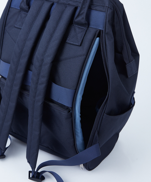 ファスナーや使い合わせの素材は本体カラーと同色に。金具カラーもシルバーにし、落ち着いた印象に仕上げました。また、今までになかったグレーベージュの色を新たに作成。開口部が口金仕様で、大きく開くので荷物の出し入れが楽々です。背面には貴重品を収納できるセキュリティーポケットと本体収納へ直結するファスナー付き。22L収納できる大きめ容量なので、幅広いシーンで活躍すること間違いなし。機能性と使いやすさの備わった、他にはない特別感の詰まったアイテムです!
