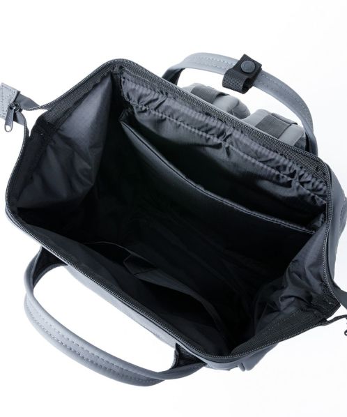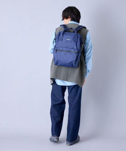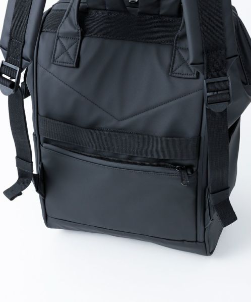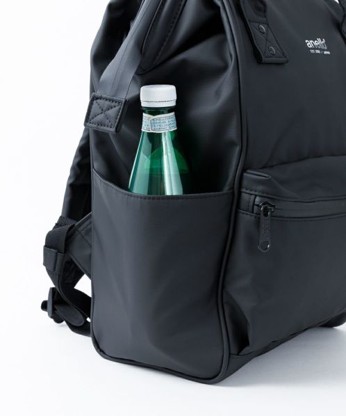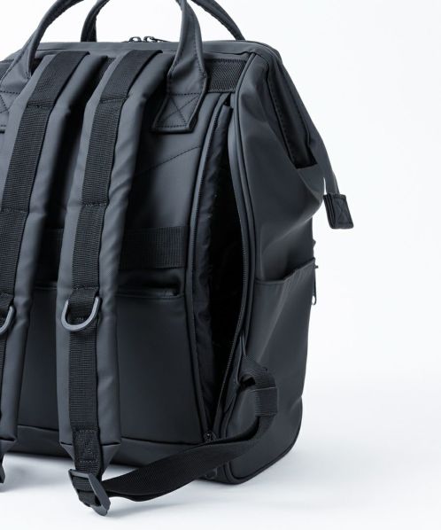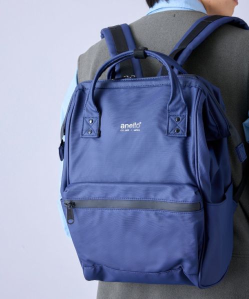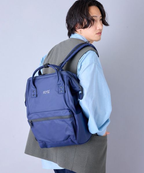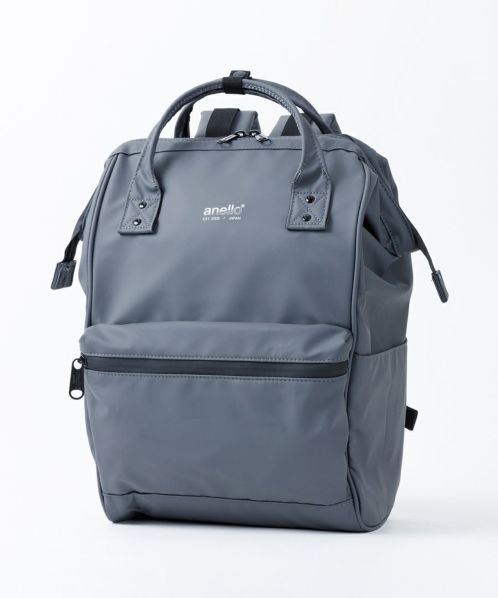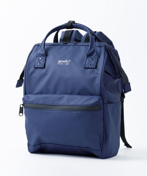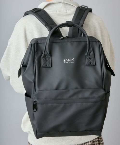 水を通しにくい生地を使用した耐水シリーズ。カラーリングとシンプルなデザインで、シーンや好みに合わせてお使いいただけます。anelloのアイコンバッグである口金を使用したレギュラーサイズのリュック。13インチのPCが収納可能で、セキュリティーポケットやキャリーオンテープなど充実した機能を搭載。普段使いだけでなく出張などのビジネスシーンにも◎