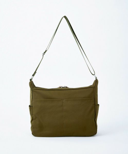 バイカラーのパイピングデザインと使い合わせの合皮がアクセントになったミニショルダーバッグ。柔らかい手触りのツイルポリエステルを使用しました。合皮を使い合わせることにより高級感のある雰囲気に。A4サイズがしっかりと収納でき、更に10ポケット仕様の機能性抜群なショルダーバッグです。