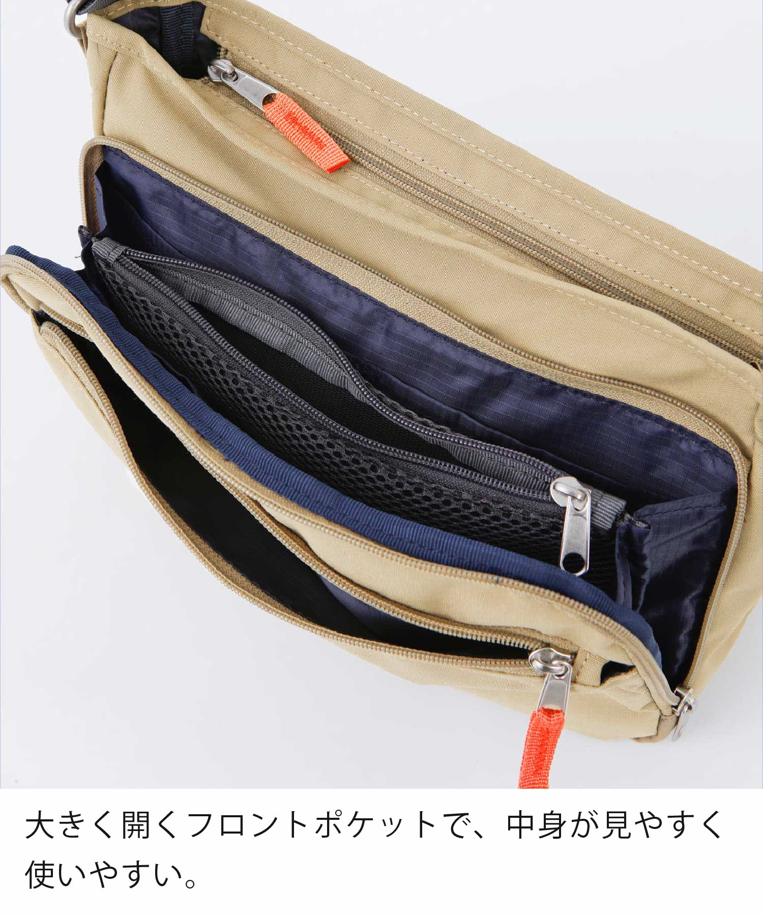 やさしいカラー展開のCABIN(キャビン)シリーズ。沢山のご要望から生まれた、多機能ショルダーバッグ!優しいカラー展開で、配色のファスナー引手がデザインのポイントに。軽量で撥水加工が施された、使いやすいバッグです。フロントポケットは、大きく開くので中が見え扱いやすい作りになっています。コンパクトな見た目ですが、収納力抜群。長財布や500mlのペットボトルなども入るサイズ感で、お買い物やお出かけにもぴったり。 ※ ネームのロゴデザインが掲載画像と異なる場合がございます。 ブランドロゴデザイン変更について