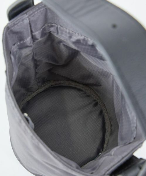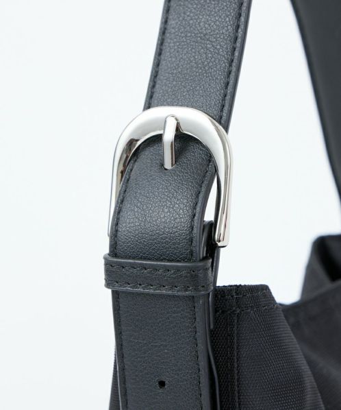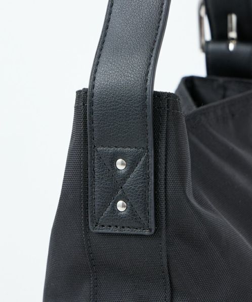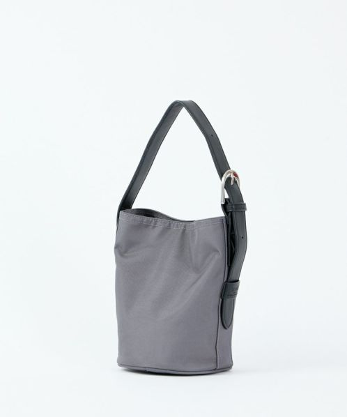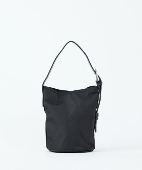 光沢ある生地と細かなシボ合皮のハンドルを合わせました。裏面はPVC加工を施し他丈夫な生地を使用していて、ON/OFF問わずデイリーユースにぴったり。肩掛けはもちろんハンドバッグのように上品な持ち方も様になるバッグ。デザインポイントの丸底は見た目以上に収納力あり。