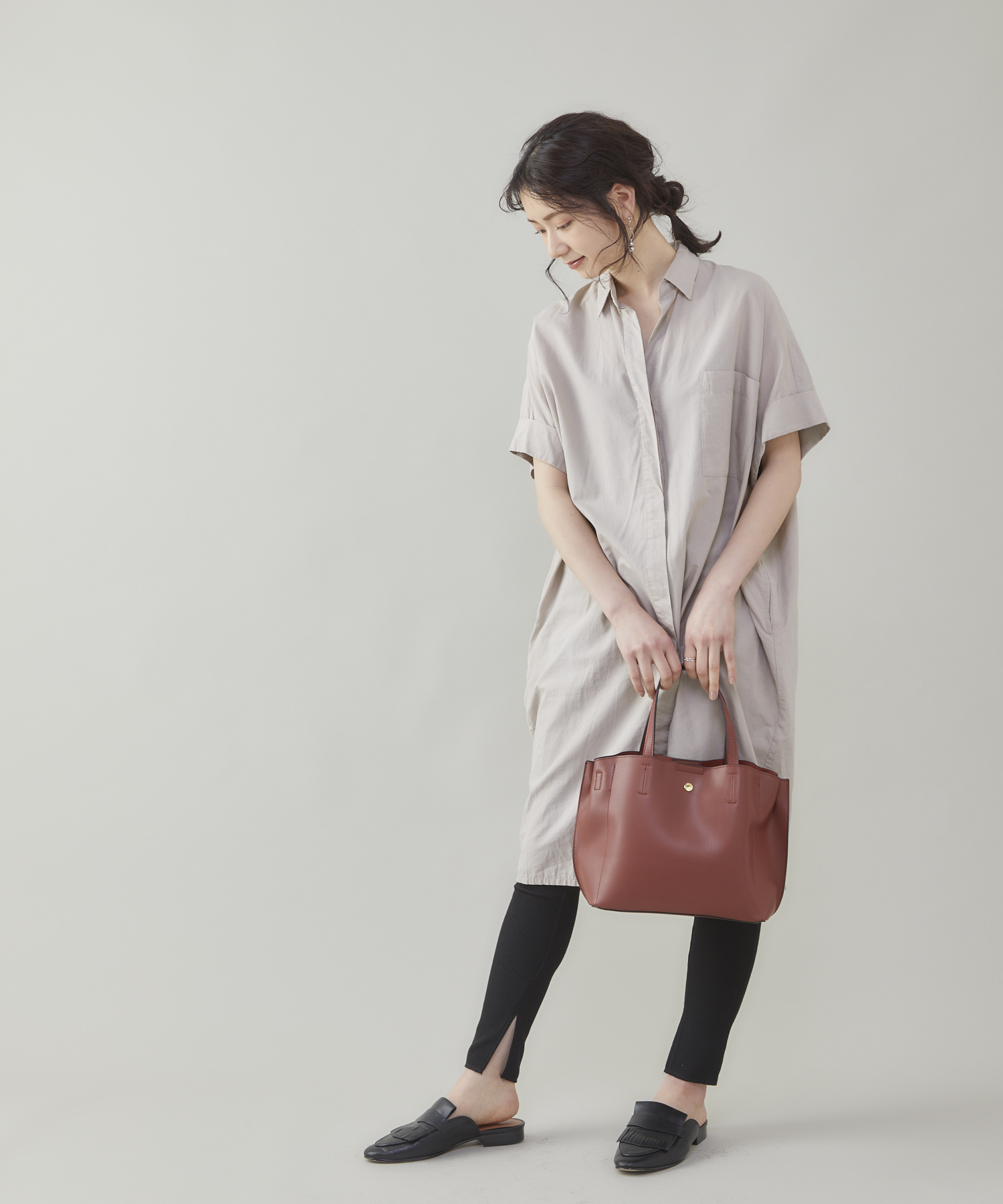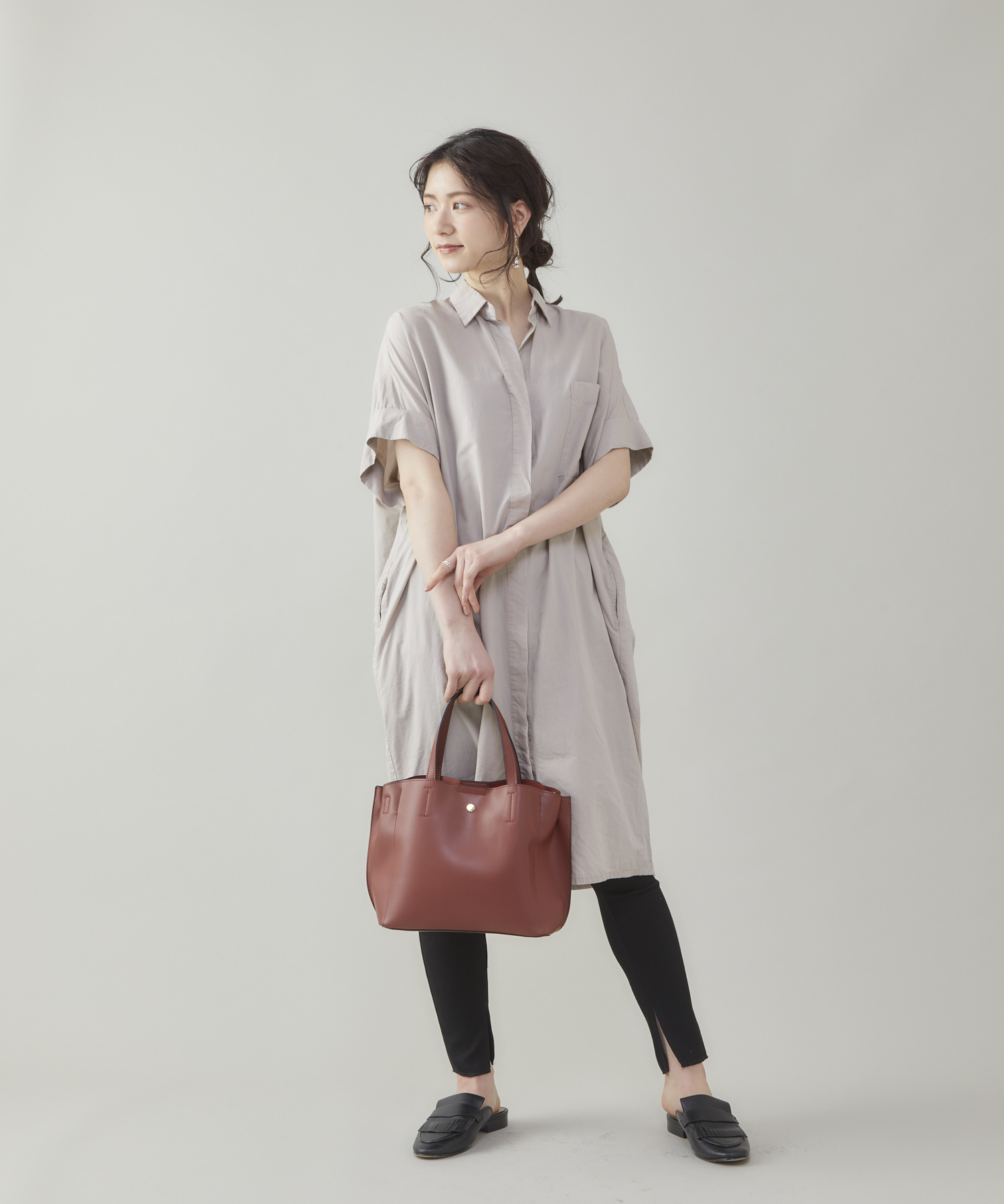 おかげさまで、累計販売数220万個の人気商品へ。 「 オンオフで使える軽いカバン 」をコンセプトに開発した合成皮革を使用したシンプルなデザインも魅力のアイテム。2WAYで使用できるトートバッグは立体感を出したシルエットがポイント。普段使いしやすいサイズ感にあおり型の開口部が使いやすい。13cmと広めにとった底マチもうれしいポイント。ほどよいハリとやわらかさがあり、本革のようなしっとりとした手触りです。 ※カラーについて ライトグレー(LGB)は、ライトグレー×ベージュの配色です。 シリーズ一覧 「1番重いものでも500g以下という驚異の軽さ!荷物が多い方でも安心♪」 収納例: イヤホン・スマホ・タンブラー500ml・長財布・ポーチ・定期ケース・A5ノート・ハンカチ・ペンケース