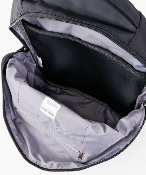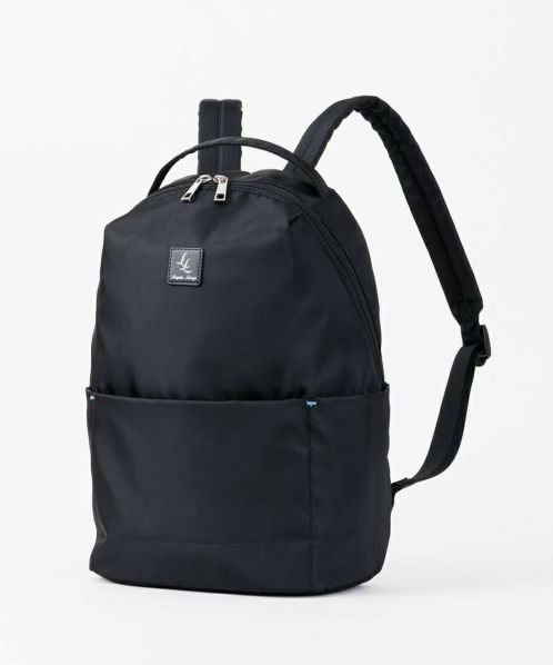 上品なツヤ感のある撥水・抗菌加工を施した生地を使用したアイテム。立体的なアウトポケットや配色ステッチがこだわりのポイント。雨の日に濡れてしまっても気にせず快適に使える機能的なシリーズです。A4ノートや13インチのPCが入るサイズのリュック。ポケットは7箇所あり、背面にはセキュリティポケットがついていてお財布の収納も安心です。荷下ろしする際、手でも持ちやすいよう上部にハンドルがついている便利な仕様。スリムな印象ですが、13Lの容量があり、荷物が多くなりがちな方にもおすすめです。