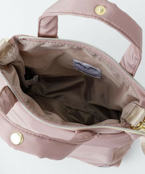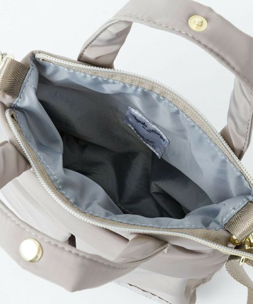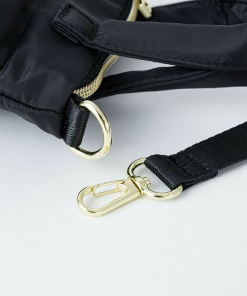 トレンドのヘルメットバッグを、上品なツヤ感のあるはっ水ポリエステルとゴールド金具を合わせ、キレイめな雰囲気に仕上げたシリーズ。機能性はそのままに、アーミーなアイテムを大人っぽくカジュアルに楽しめるデザイン!スプリングホック付きのもっちりハンドルで使い易さも◎ 開口部はファスナー付きで安心の仕様。ワンハンドルとショルダーの2WAYで使えるので、さまざまなシーンに対応します。前面のシングルポケットは二つ折りの財布も収納できる便利なサイズ感です。