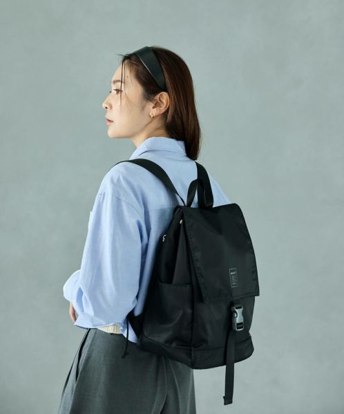 両面はっ水加工を施した生地にカラープラスチックパーツをアクセントに加えたSAIシリーズ。小ぶりながらA4サイズが収納可能。デイリーユースにぴったり。すっきりとした印象で、性別問わず持ちやすい〇