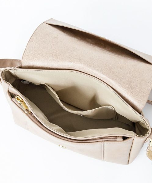 表情のある風合いの良い合皮がポイントのバッグ。カジュアルかつナチュラルな雰囲気で、持つ人を選ばないシンプル&ベーシックな一点。長財布と600mlのペットボトルが同時に入る収納力! 使い勝手の良いファスナーポケットも魅力の一つです!
