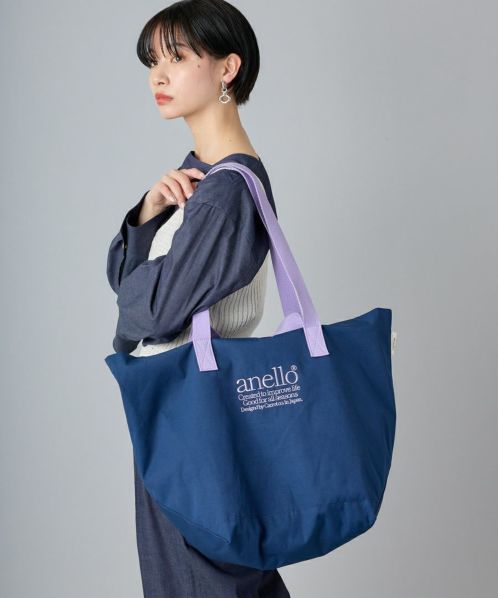 キャンバス調の生地にトレンド感のあるロゴを刺繍しました。軽く、洗濯機でのお手入れが可能でラフに使えるのが魅力。A3サイズが収納可能な大きめトートバッグは、ハンドルが2本ついているから、肩掛けと手持ち両方の持ち方ができる2WAY仕様。1泊~2泊の旅行の荷物を入れるのにもぴったりです。※この製品は洗濯後に乾燥が不十分な場合、金具・部材の劣化や生地の臭いの発生等の可能性がございますのでご注意ください。