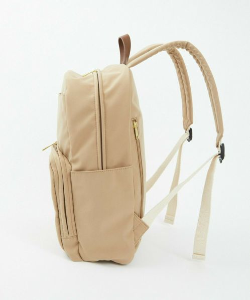 撥水加工を施したコットン調ツイル素材を使用したリュックです。シンプルで飽きのこないデザインに仕上げたので長くお使いいただけます。10の便利なポケットが付いていて、全面のファスナー収納はじゃばら付きで大きく開いて中身が見やすいです。背面にはメイン収納への直結ファスナーとセキュリティポケットが付いています。