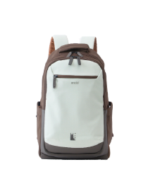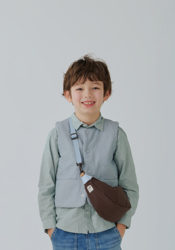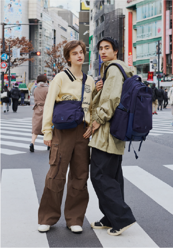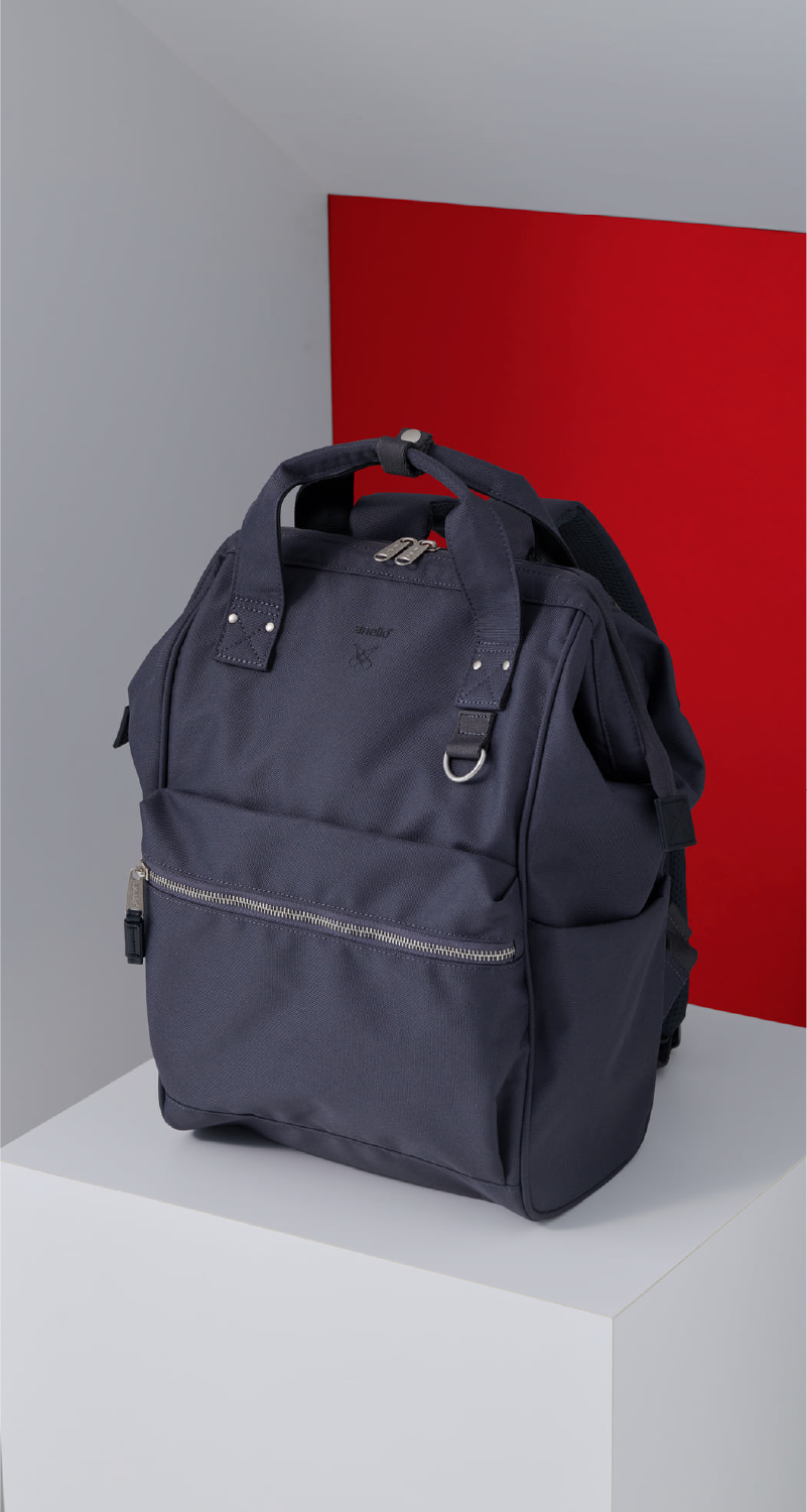 仕切り収納や機能性は充実しているが、 柔らかみのある生地感で丸みのある形に落とし込んでジェンダーレスな印象に。