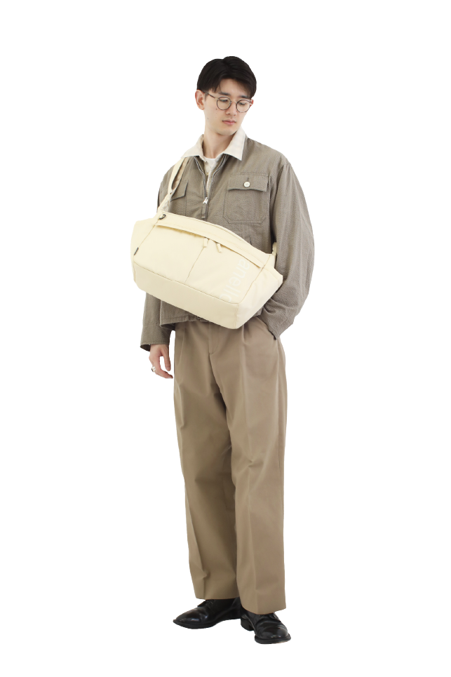 大きめでラフに持てるショルダー。ポケットも7つと機能性に長けており、荷物の整理がしやすいところもポイント。サイドポケットには600mlのペットボトルも収納可能。様々なファッションにも合わせやすく、ジェンダーレスに持てるデザイン。