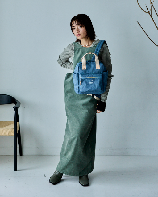 ポリエステル素材と牛革を合わせたやわらかい印象のミニトートバッグは、使いやすさを考えたポケットの配置と、ショルダーを外した時の横長シルエットがこだわりポイント。前後に設けたファスナーポケットにはさっと取り出したいアイテムを収納するのに最適。