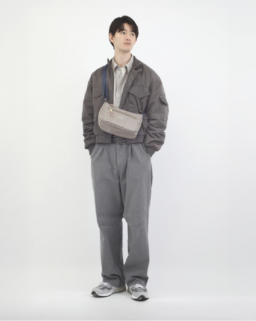 使いやすさを考えたポケットの配置と、横長シルエットがこだわりポイント。ショルダー紐のつけ外しで、ショルダーバッグやハンドバッグとして使える2WAY仕様。前後に設けたファスナーポケットにはさっと取り出したいアイテムを収納するのに最適。