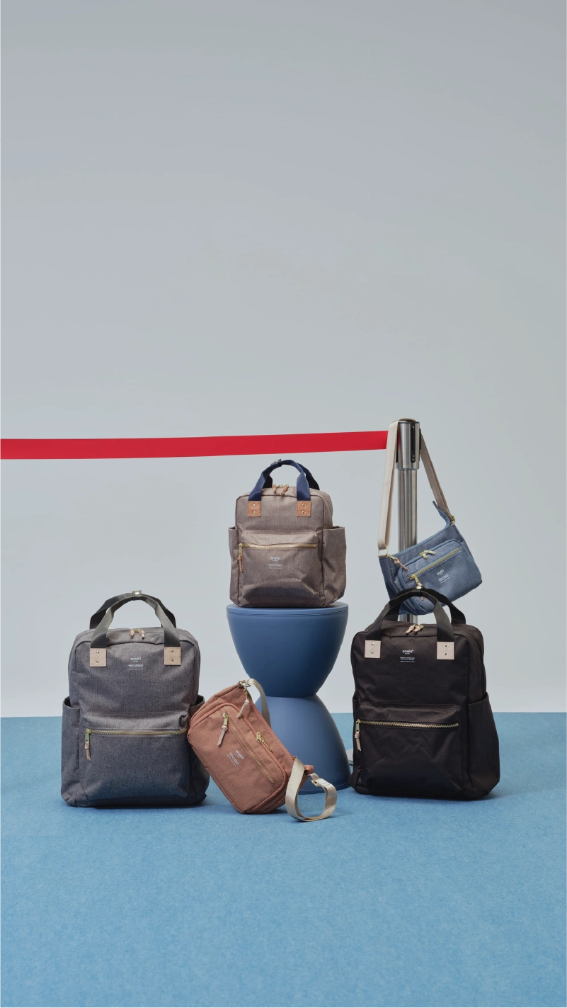 杢調ポリエステル生地とゴールド金具&牛革の使いあわせが
