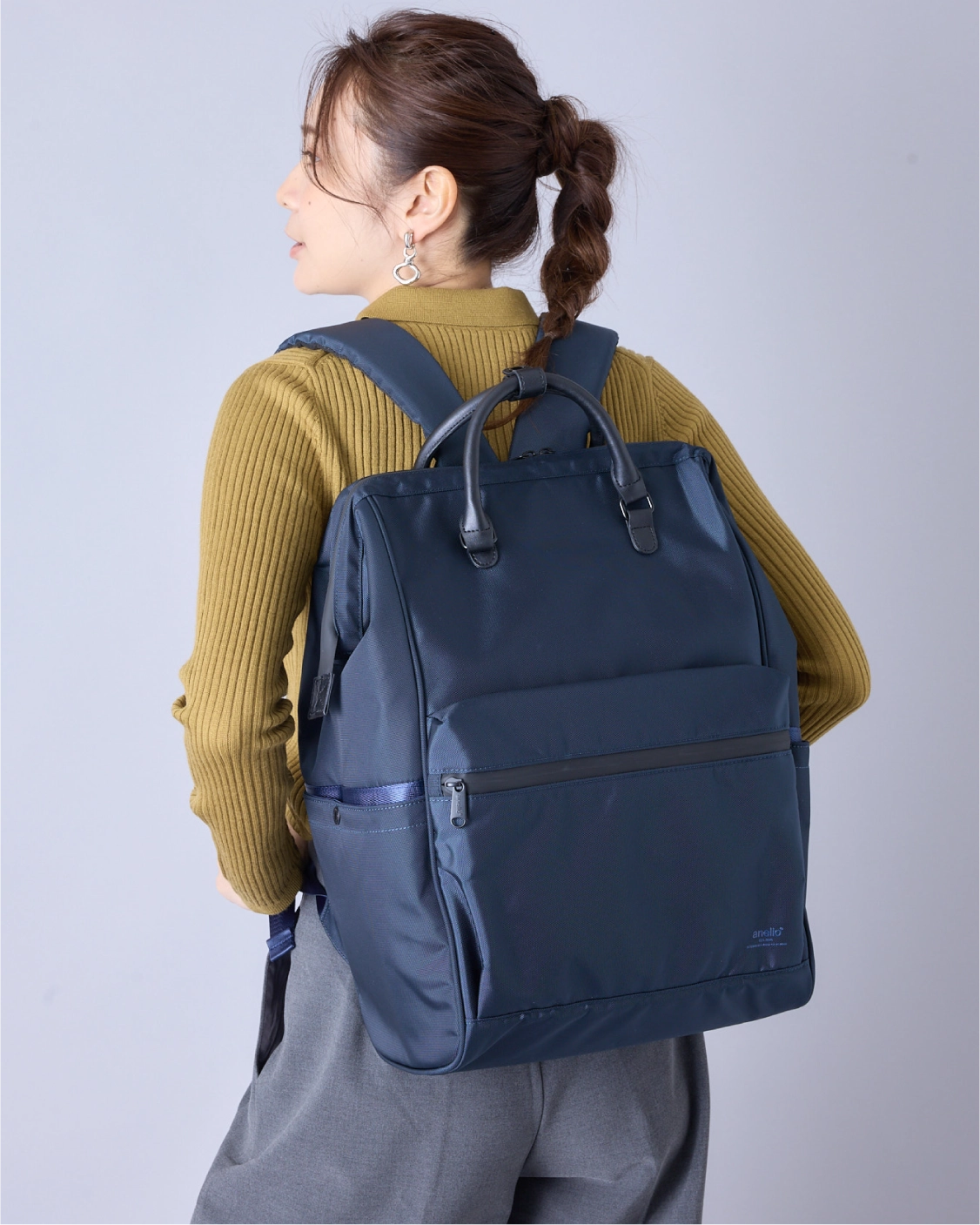 “3通りの持ち方でスタイル自在なリュック”