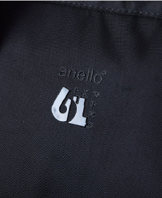 凹凸感のあるはっ水光沢ポリエステルツイル生地は、適度な厚みとハリ感。水に濡れてもさっと拭き取ることができる。