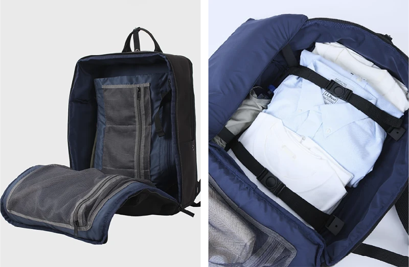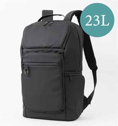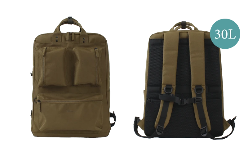 メイン収納が縦に大きく開くラウンドファスナー仕様。ポケット付きの仕切りがあるので、衣服を分けて収納もできる立体感あるフロントポケットはスマホやイヤホンなど、すぐに取り出したい荷物を入れておくのにも便利。30Lの大容量で2泊3日分の荷物もしっかり入る大きさで、ビジネスリュックやトラベルリュックにもお使いやすい。