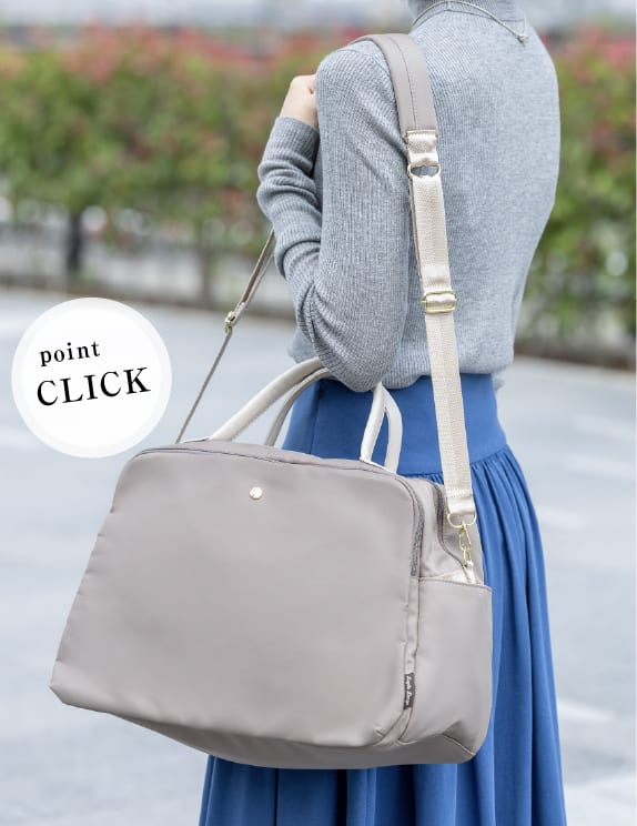 クッション性のあるショルダーが、肩への負担を軽減してくれる。