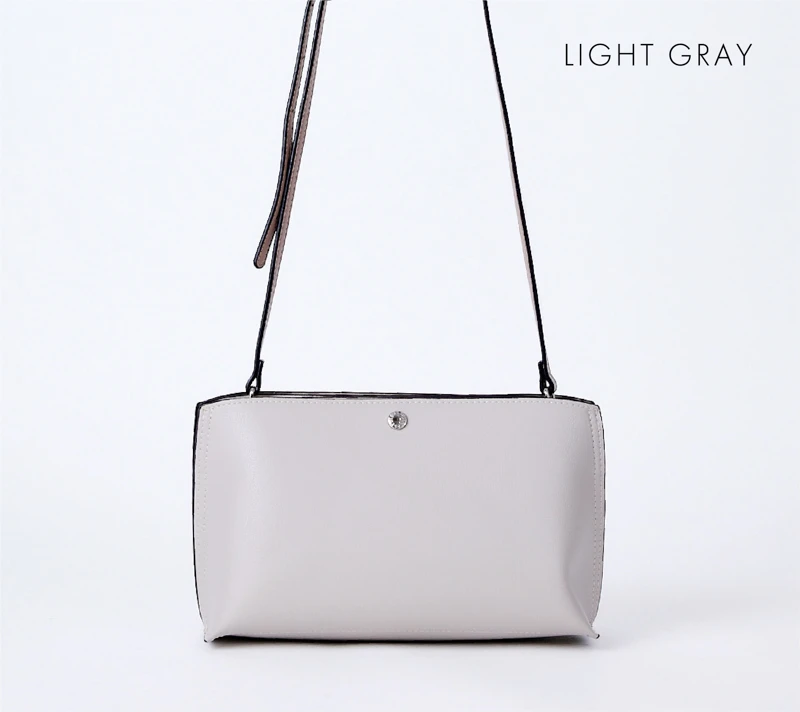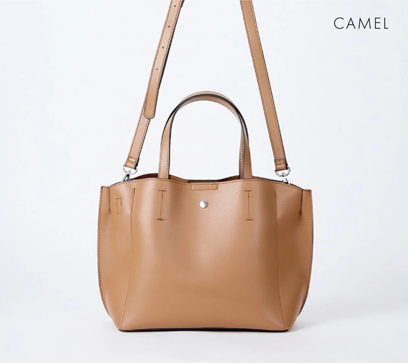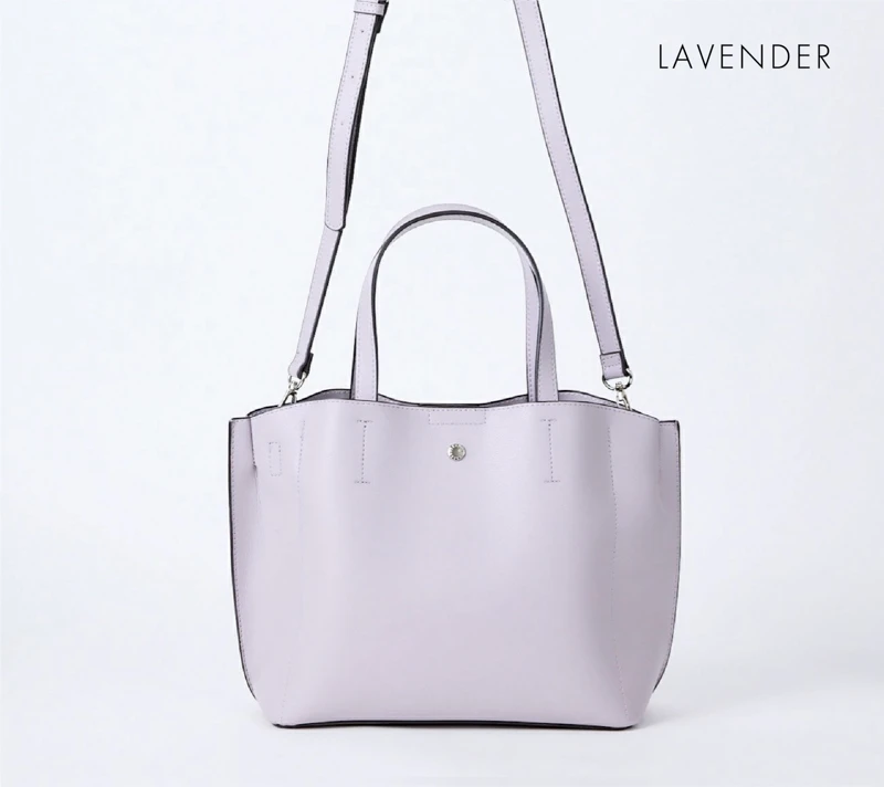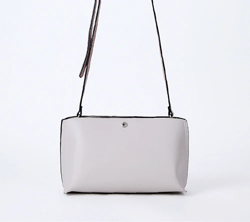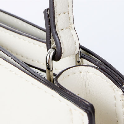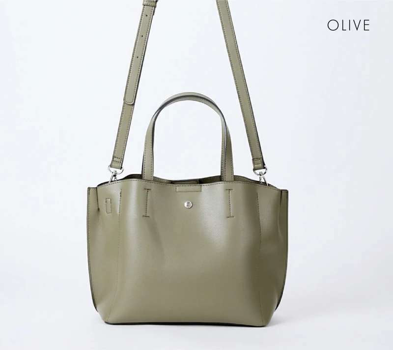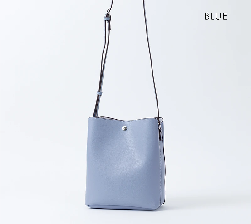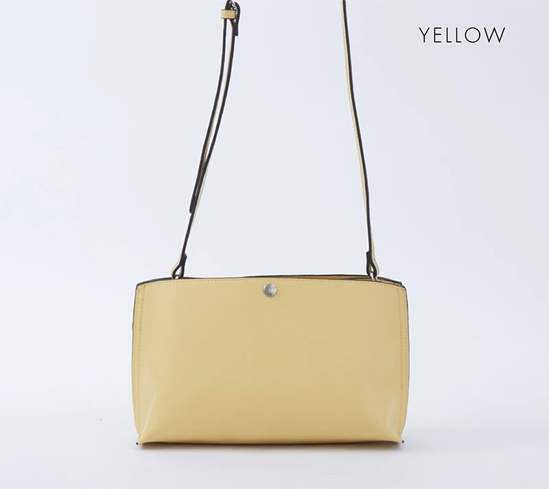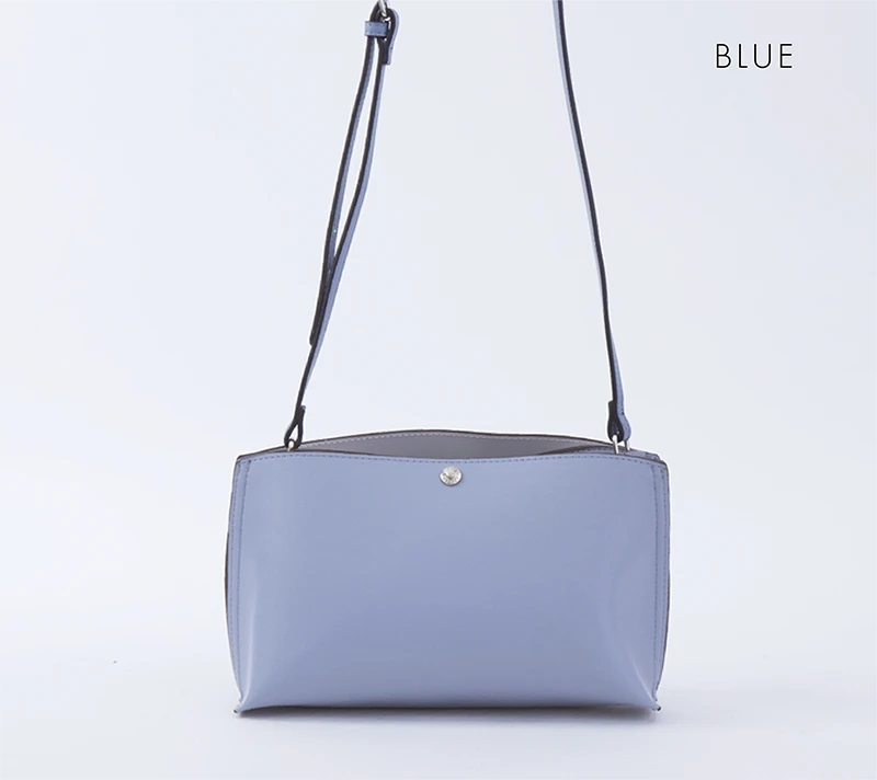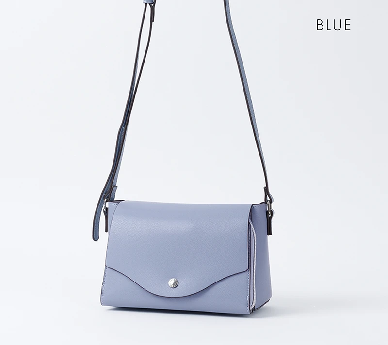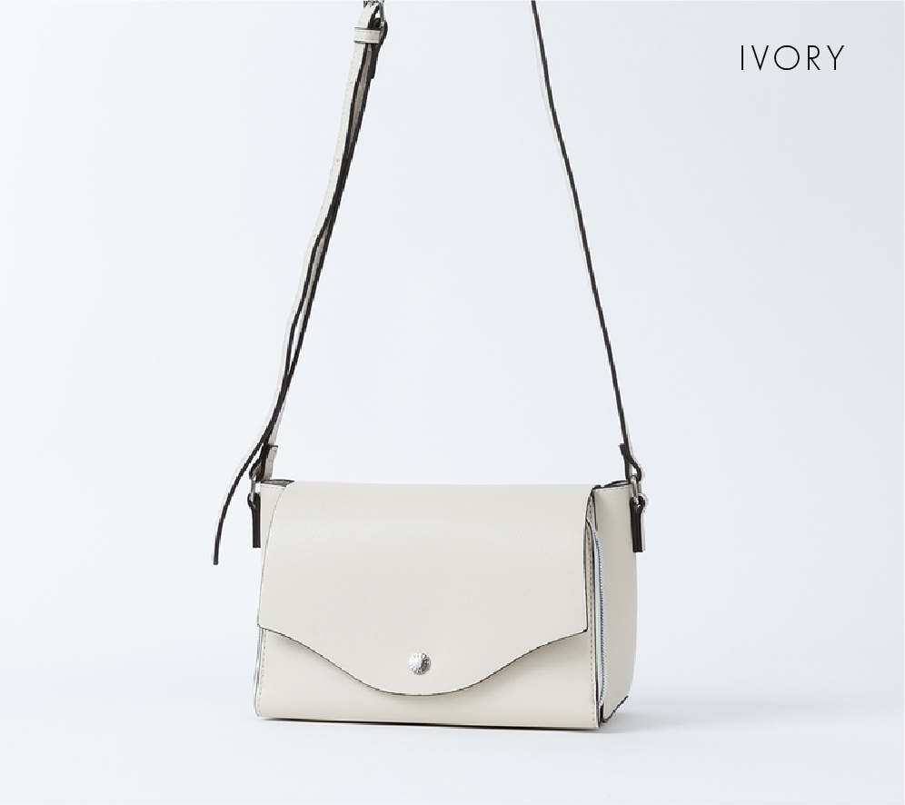 すっきりとシンプルな見た目の縦型ショルダーバッグ。3つ口の開口部が仕分けしやすい点もポイント。