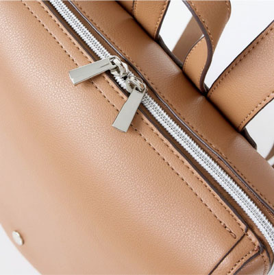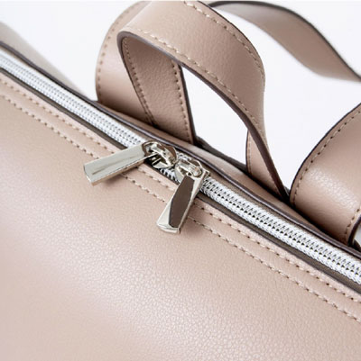 メインがファスナー開閉で、前後にもポケットがある3層構造。コンパクトなのに物がしっかり分けられて便利◎
