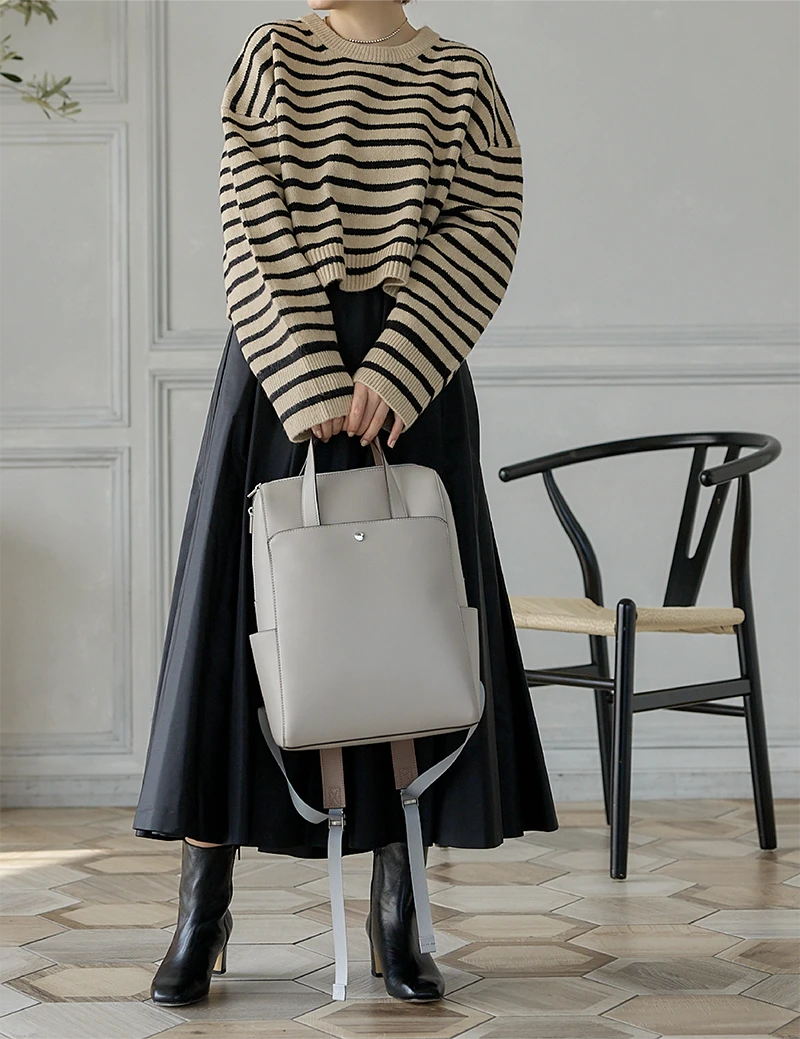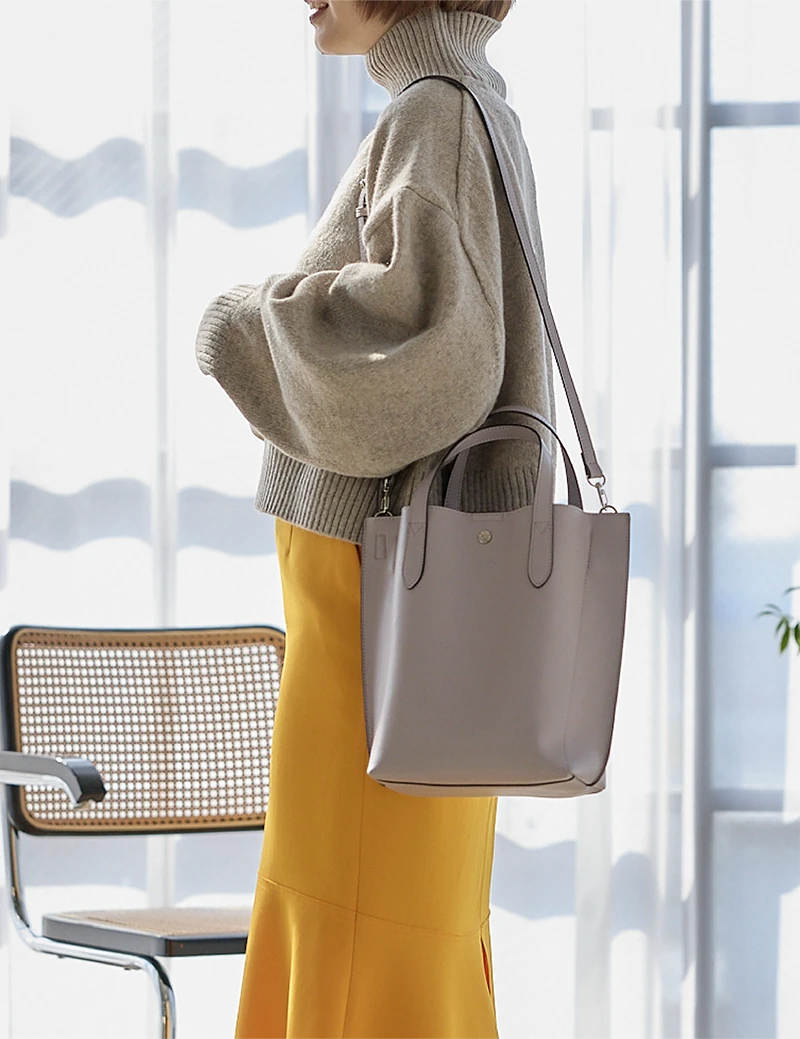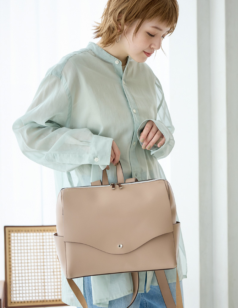 マチが広く、立体感を出したシルエットがポイント。ショルダー紐が取り外せて、トートバッグとしても2wayで使えます。
