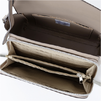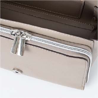 一見シンプルな見た目の中にお財布機能がついたショルダーバッグ。お財布部分は、ラインドファスナーで安心◎
